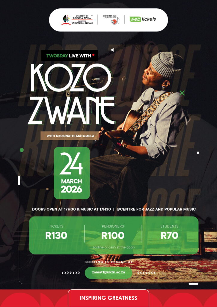 The Centre for Jazz and Popular Music proudly presents Kozo Zwane for the March edition of Twosday, Tuesday 24 March 2026 at 17:30.